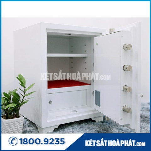 Đây cũng chính là sản phẩm két sắt làm nên tên tuổi của tập đoàn Hòa Phát ở lĩnh vực két sắt. Là một trong những đơn vị tiên phong đồ nội thất cũng như sở hữu tiềm lực sản xuất cơ khí lớn manh, Hòa Phát sản xuất ra những chiếc khóa cơ tốt nhất trên thị trường hiện tại. Thêm vào đó các mẫu két sắt Hòa Phát rất dễ mua, mức giá vừa phải với người dân làm nên một chiếc két sắt hoàn hảo cho gia đình.
