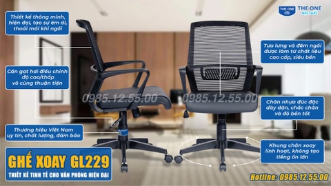 Đã là ghế làm việc thì không thể thiếu những tính năng tiện ích, thông minh phục vụ cho sự thoải mái và nghỉ ngơi cho người ngồi. Vậy mẫu ghế nào đáp ứng được nhu cầu này một cách tuyệt vời? Ghế xoay GL229 là gợi ý cho bạn cân nhắc khi tìm kiếm ghế văn phòng. Cùng chúng tôi tìm hiểu chi tiết sản phẩm ngay sau đây.