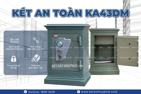 - Két sắt an toàn Hòa Phát KA43 được thiết kế 2 lớp, 2 lớp sắt ở mặt ngoài và mặt trong lòng két, lớp giữa sử dụng cát chịu nhiệt.