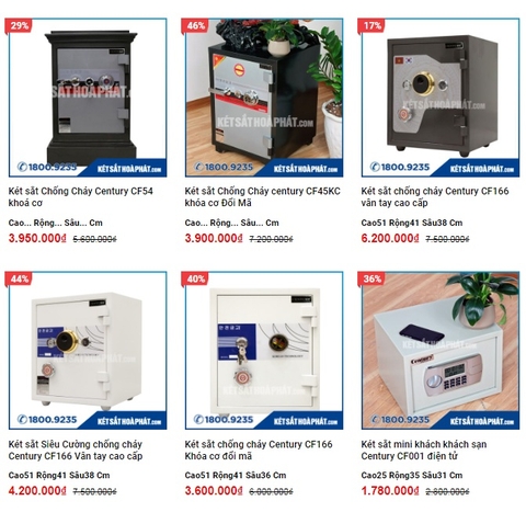 Trên đây là những thông tin về két sắt chống cháy Century mà Công ty két sắt Hòa Phát muốn cung cấp cho khách hàng. Chúng tôi hy vọng với những thông tin trên, quý khách hàng sẽ chọn được những sản phẩm phù hợp nhất, với giá thành cực ưu đãi, chất lượng cực tốt.