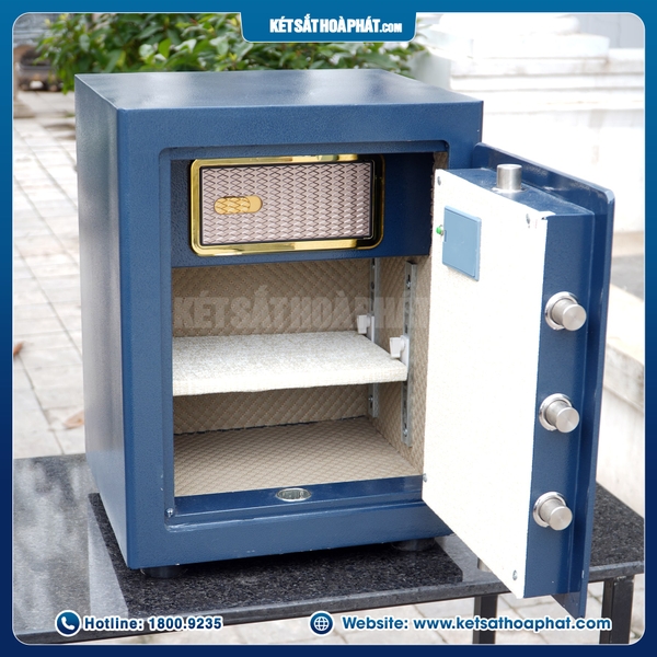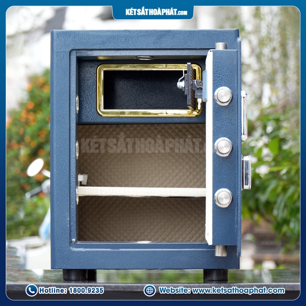 Không gian bên trong két được chia thành 3 ngăn tiện lợi, hỗ trợ người dùng phân loại và lưu trữ tài sản như tiền mặt, sổ đỏ, giấy tờ, trang sức một cách ngăn nắp, có tổ chức. Điều này giúp tiết kiệm thời gian tìm kiếm và gia tăng tính bảo mật.