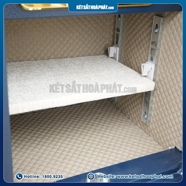 Bên trong két được bọc da nguyên tấm cao cấp, vừa tạo cảm giác sang trọng như một chiếc hộp trang sức tinh xảo, vừa giúp bảo vệ tuyệt đối tài sản bên trong không bị trầy xước. Chất liệu da còn giúp két luôn sạch sẽ, dễ vệ sinh và giữ được vẻ mới theo thời gian.