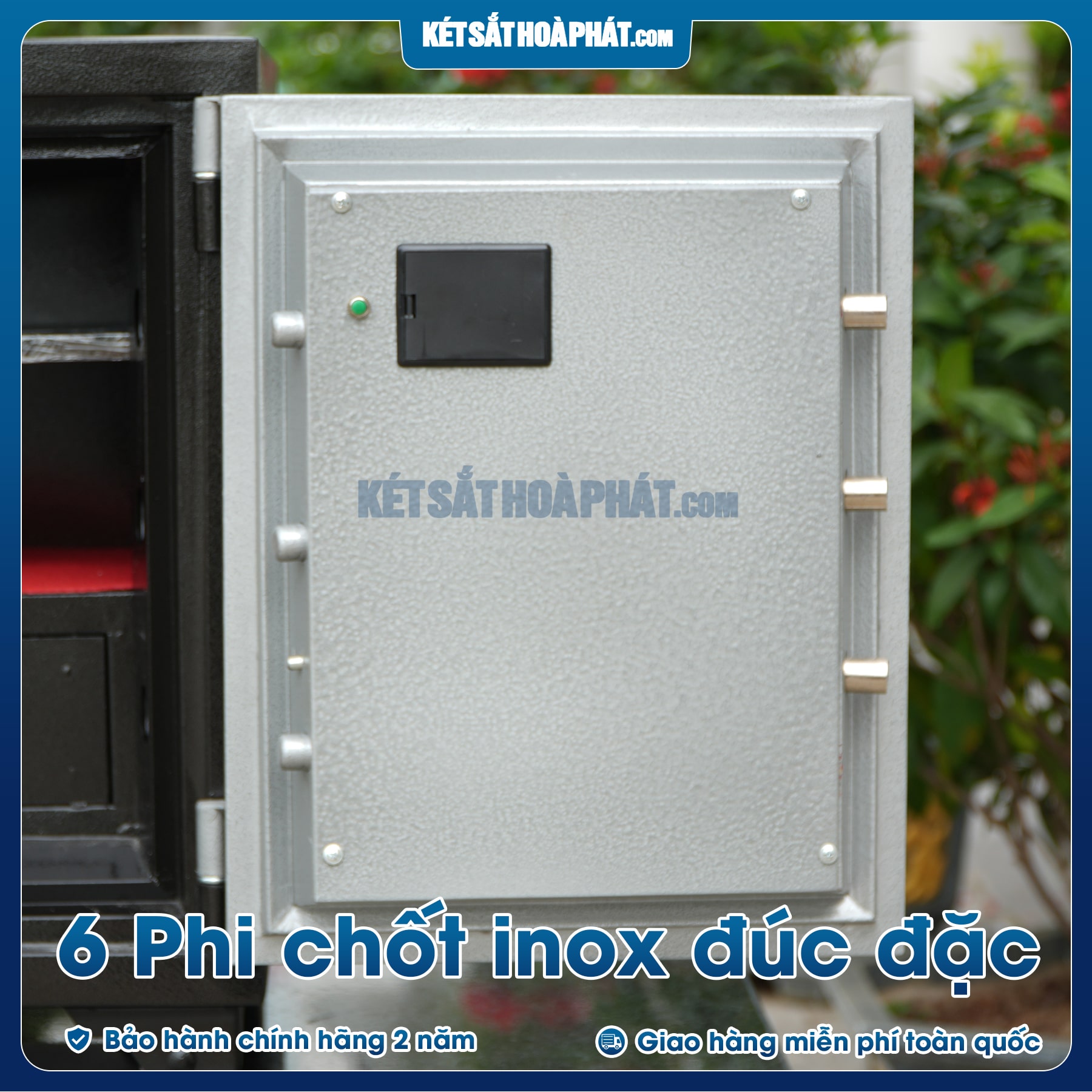 - Két sắt có 4 chốt đúc đặc chắc chắn an toàn ăn sâu vào trong lòng két sắt khi đóng cánh cửa lại đảm bảo vô cùng chắc chắn chống khoan phá, cậy két sắt.