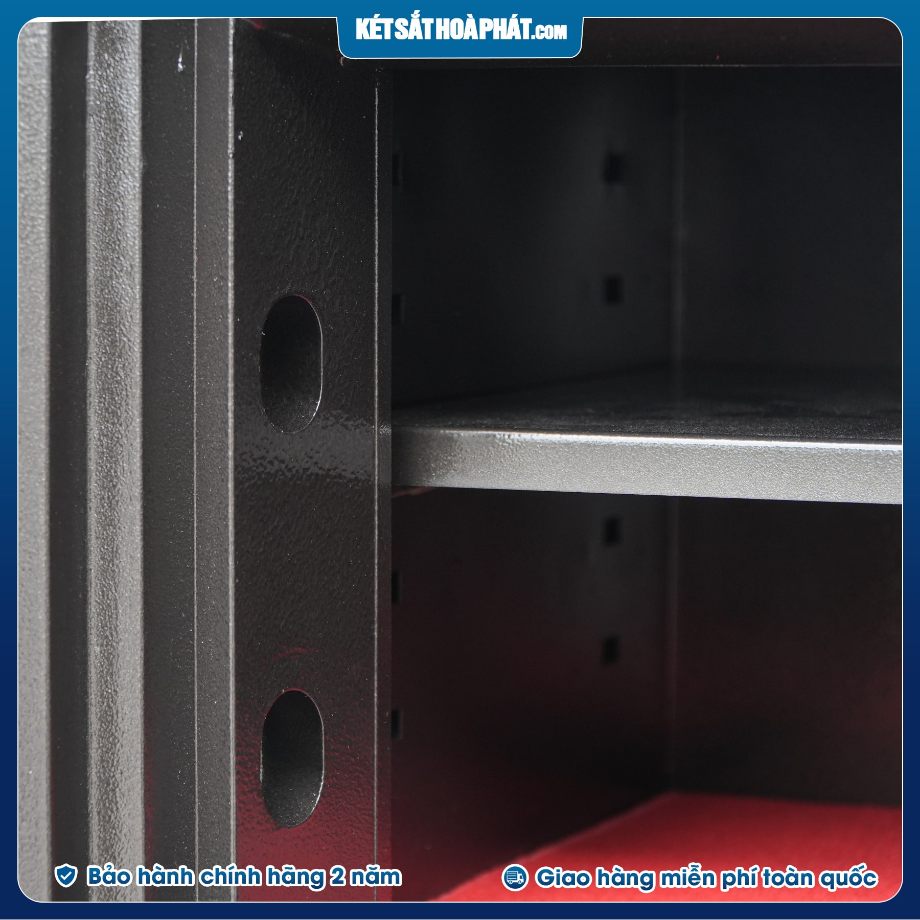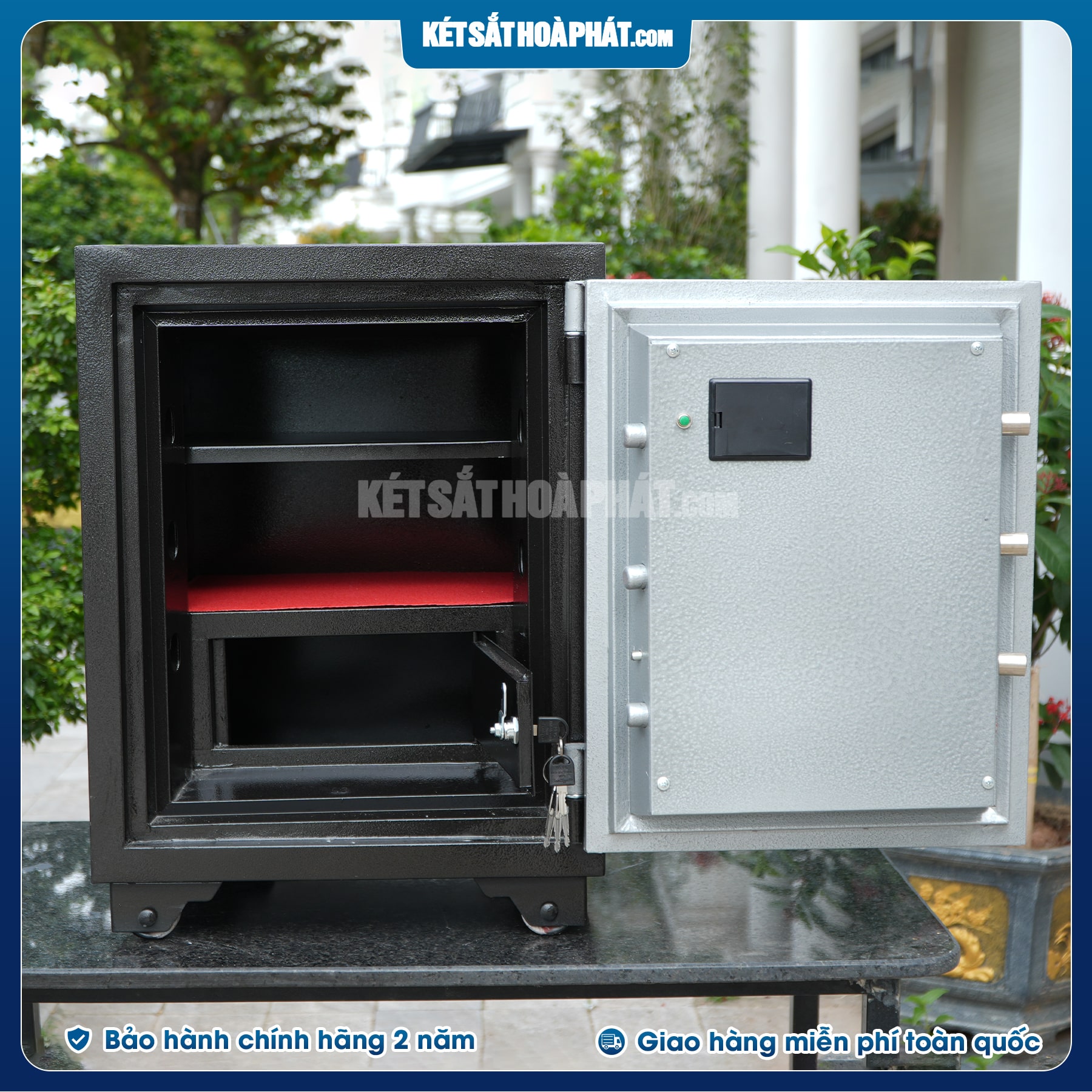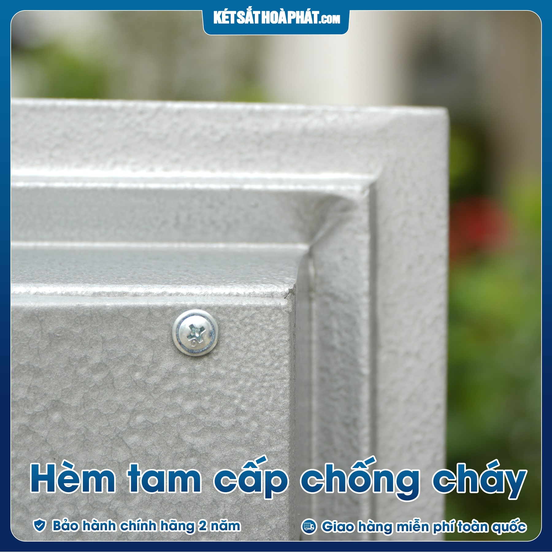 - Két sắt chống cháy được đúc đặc 3 lớp: phía ngoài và bên trong là 1 lớp thép dày, ở giữa là lớp bột chống cháy cao cấp từ hợp chất aluminum,có khả năng chống cháy cao, giúp anh chị yên tâm khi có rủi ro hỏa hoạn xảy ra thì tài sản bên trong vẫn được bảo vệ nguyên vẹn giá trị.
