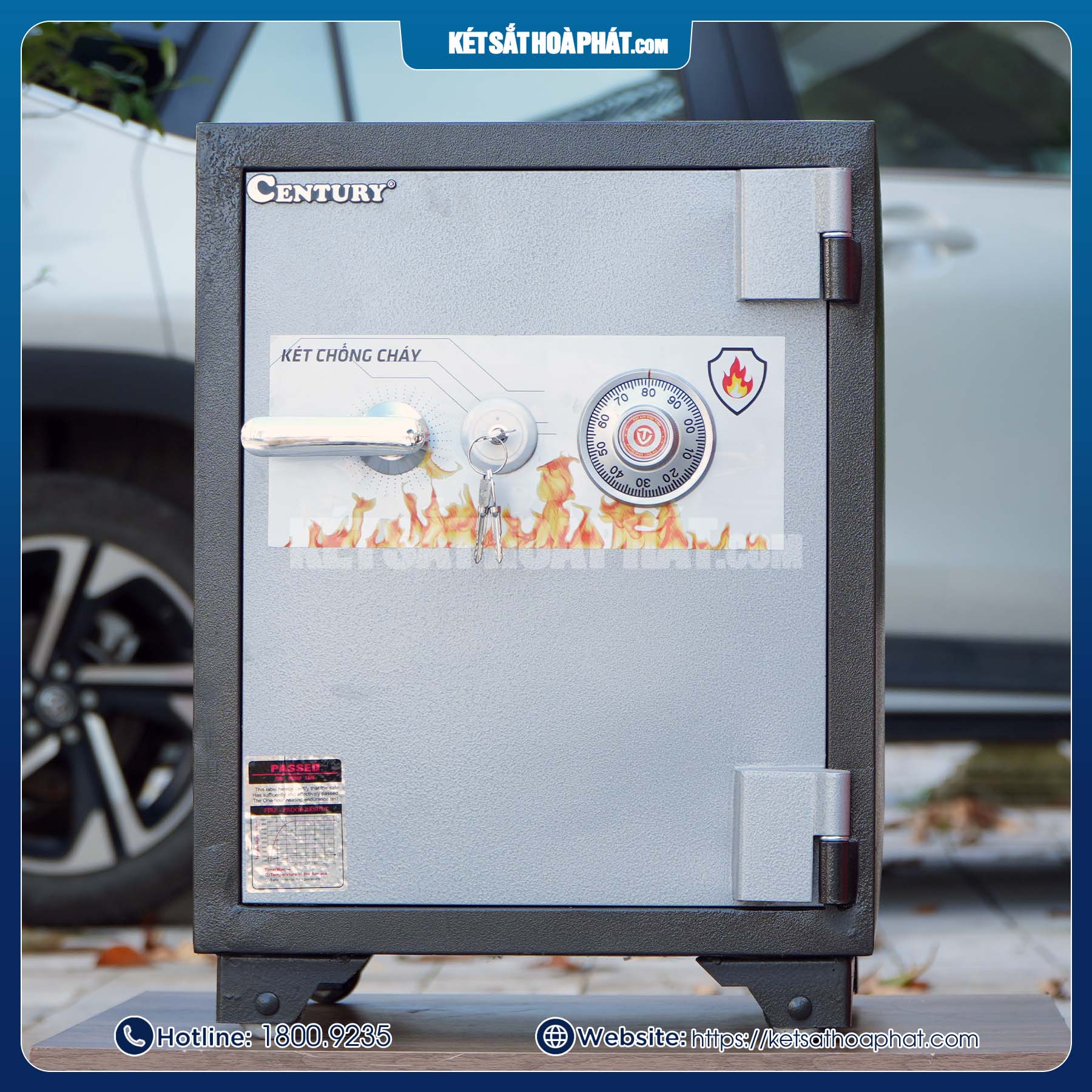 Két sắt chống cháy Century CF45KC khóa cơ có cấu tạo chắc chắn với thân két và cánh két đúc đặc từ thép dày nguyên tấm. Bên trong két được chia thành nhiều ngăn tiện dụng: