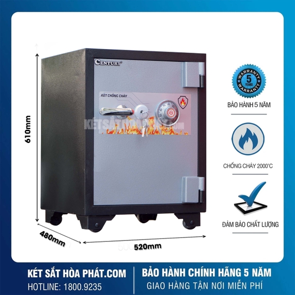 Két sắt chống cháy Century CF45KC khóa cơ là mẫu két sắt sử dụng khóa cơ truyền thống, tích hợp khả năng chống cháy cao. Sản phẩm được trang bị khóa chìa 4 cạnh chống sao chép, kết hợp với khóa mã, đảm bảo tính bảo mật tuyệt đối cho người dùng.