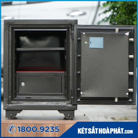 Cánh cửa được làm từ thép bảng mã nên rất dày, két có 3 chốt an toàn được đúc đặc, trong lòng két còn có 1 ngăn kéo có khóa riêng biệt.