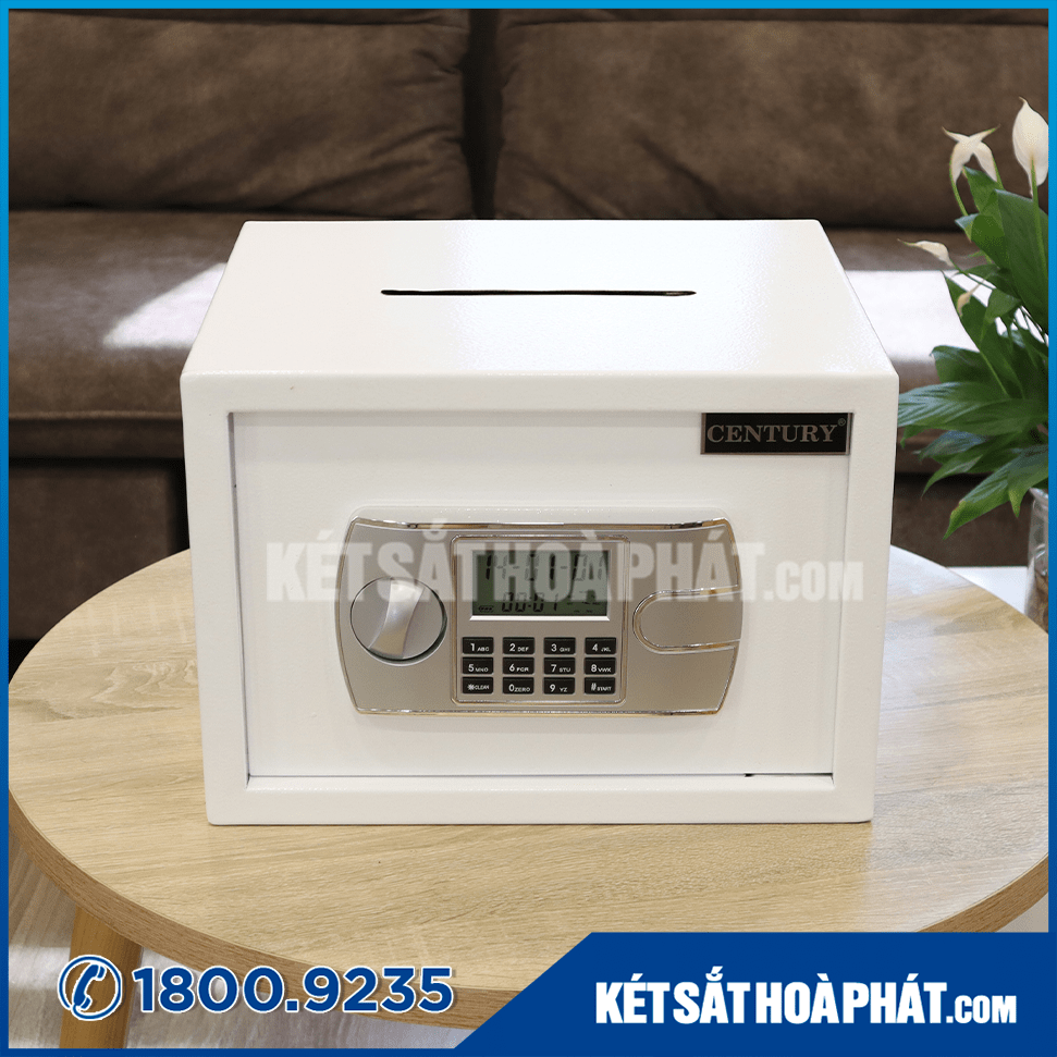 Két sắt công đức khoét nóc Century khóa điện tử có khe bỏ tiền KCD250 trắng chống trộm, chống cháy