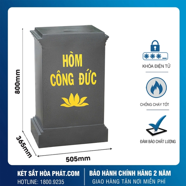 Két sắt công đức KCD800 điện tử xanh của Hòa Phát không chỉ đem lại tính bảo mật cao mà còn phù hợp với nhu cầu của các địa điểm tâm linh và đơn vị thiện nguyện.