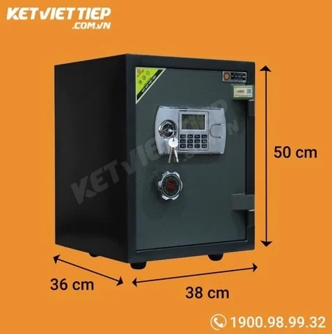 Mẫu két sắt mini chống cháy giá rẻ tiếp theo thực tế chính là phiên bản cải tiến của KS35D: KS50D. Về đặc điểm kĩ thuật, KS50D sở hữu ưu nhược điểm tương tự như người tiền nhiệm của nó, tuy nhiên nó đã được nâng cấp phần trọng lượng, lên tới 50kg, giúp việc đặt cố định vững chắc hơn rất nhiều.