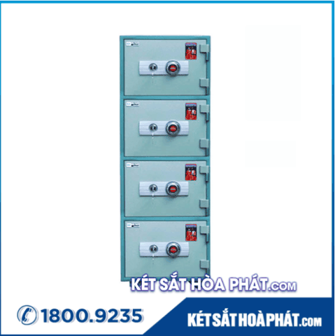 Mẫu két sắt mini chống cháy nổ tiếp dù có cân nặng lên tới 190kg nhưng lại là lựa chọn số 1 của các phòng kế toán của các doanh nghiệp lớn và nhỏ. Đơn giản đây là thiết kế 4 két sắt mini khóa cơ chống cháy đơn ghép lại, giúp việc phân loại tiền bạc, giấy tờ, tài sản công ty dễ dàng hơn cũng như giảm thiểu rủi ro bị bê két đi. Cả 4 phần két mini đều sở hữu mã số cũng như chìa khóa cơ riêng biệt, tránh việc bị chồng chéo khi sử dụng. Vì có cân nặng khá đô con nên Két sắt chống cháy mini Hoà Phát 4 tầng KS50T4 được lắp 4 bánh xe ở dưới để người sử dụng có thể đẩy và đặt vào những vị trí thích hợp trong căn phòng.
