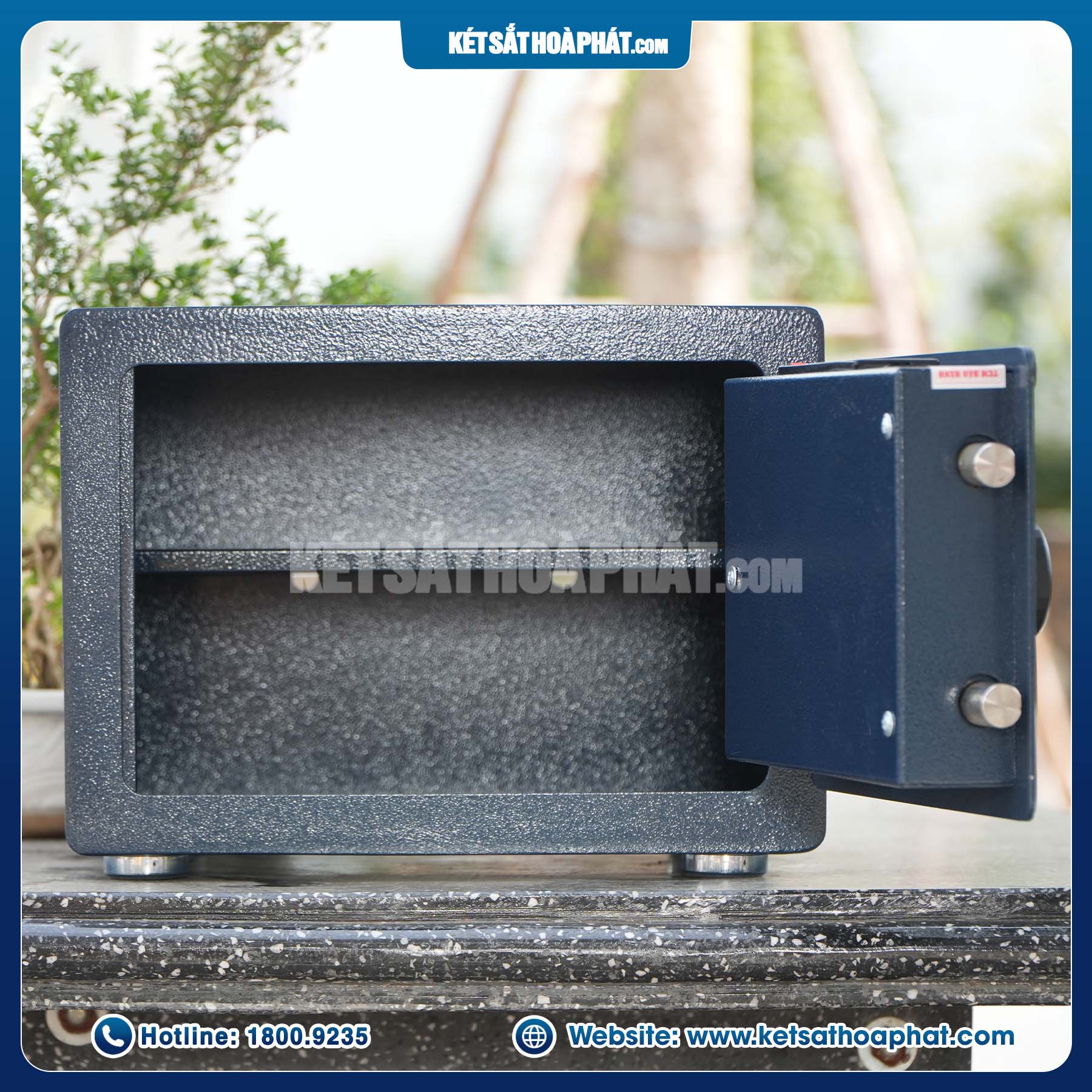 Không gian bên trong két rộng rãi, đủ để lưu trữ tài liệu A4, sổ đỏ, trang sức và các vật dụng giá trị. Két còn có khay đợt tháo rời ra được, thuận tiện cho việc sắp xếp tài sản.