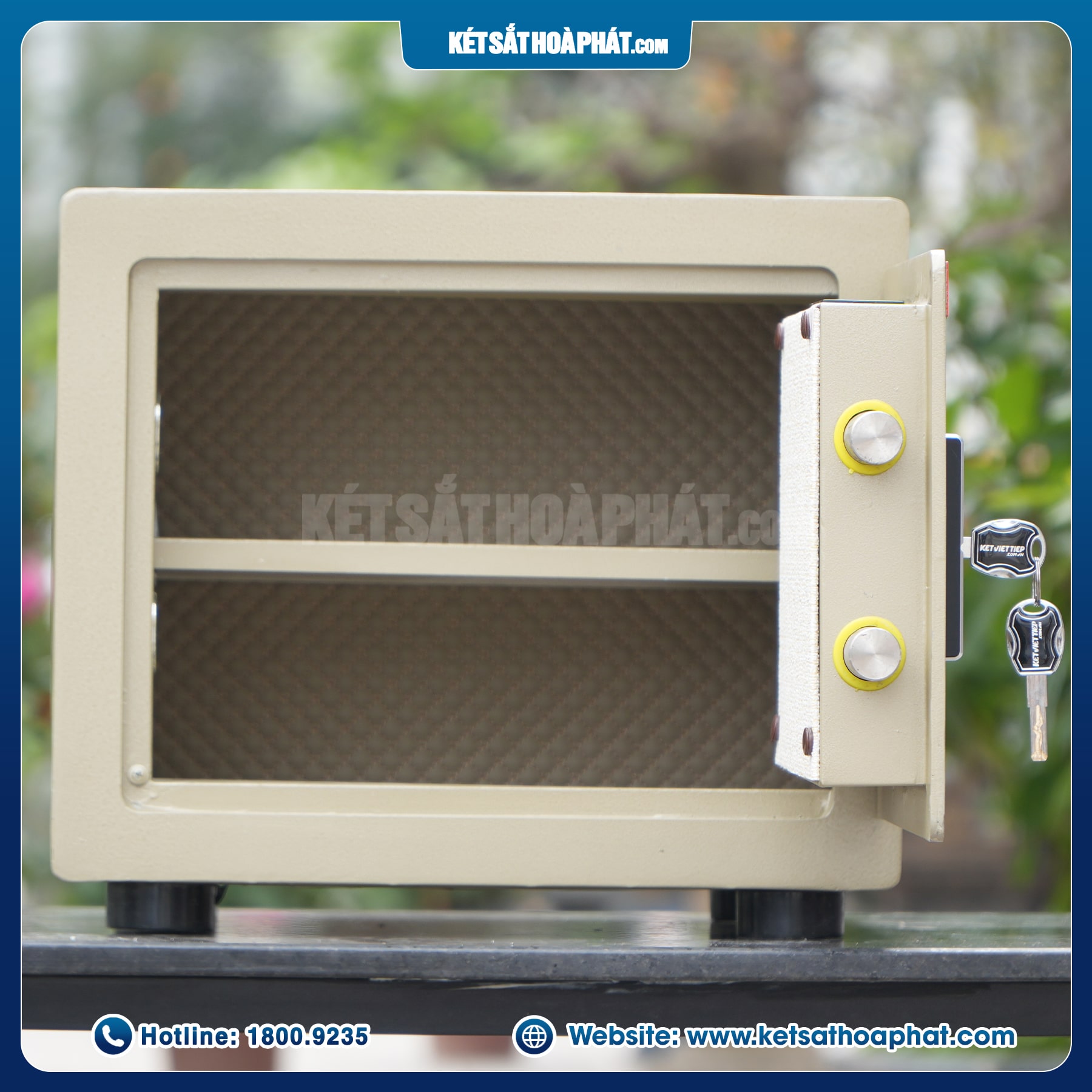 Ngoài mở bằng mã số điện tử, két vẫn đi kèm 2 chìa cơ giải cứu chuyên dụng, sử dụng trong trường hợp quên mật khẩu, pin yếu hoặc lỗi hệ thống, đảm bảo luôn có phương án dự phòng.