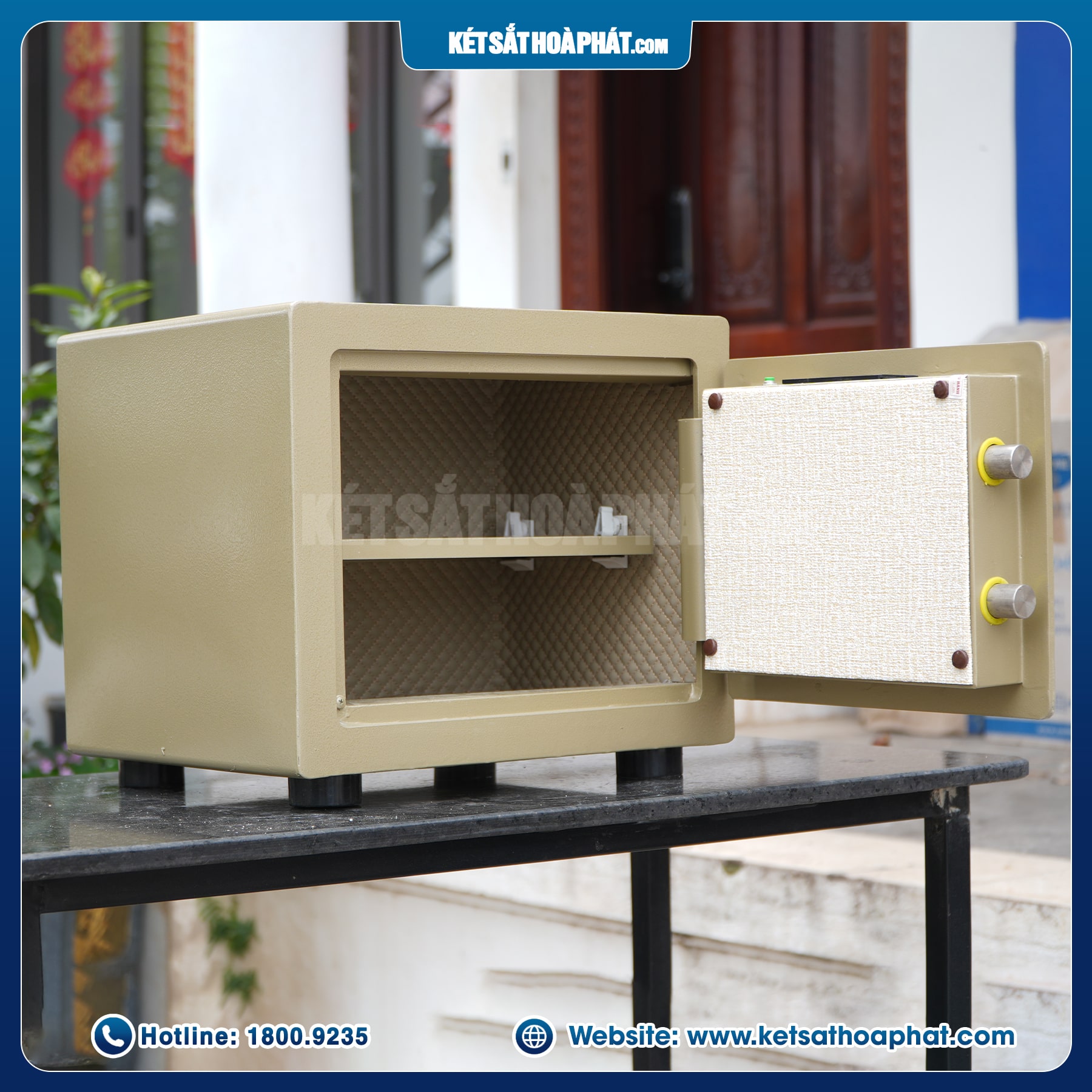 Toàn bộ thân và cánh két sắt được đúc nguyên khối từ thép đặc cao cấp, không hàn ghép, với độ dày thân lên đến 8mm, cánh cửa dày 7mm – gấp khoảng 7 lần két sắt thông thường chỉ dùng thép mỏng làm cánh cửa chỉ dày từ 0.8 - 1,2 ly hoặc thép hộp dày rỗng ở giữa. Cấu trúc này giúp két sắt chống khoan cắt, chống cạy nạy và chịu lực va đập cực tốt, đảm bảo tài sản luôn được bảo vệ tuyệt đối.