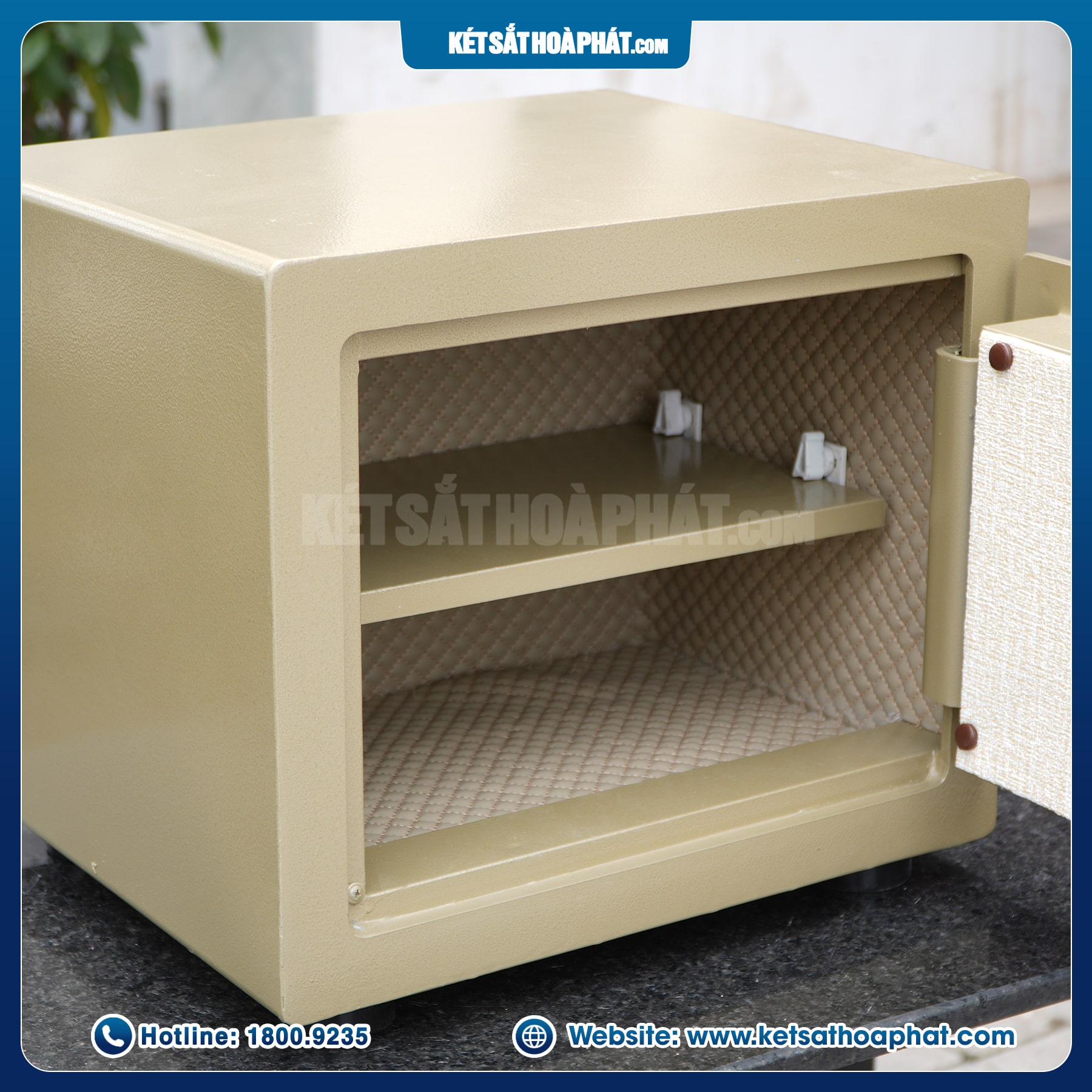 Phía trong két sắt được bọc lớp da cao cấp màu nâu sẫm hoặc vàng nâu tùy lô hàng, giúp bảo quản tài liệu, giấy tờ không bị trầy xước hay ẩm mốc. Ngoài ra, két sắt còn có khay đợt chia ngăn dễ tháo lắp, giúp người dùng linh hoạt sắp xếp tài sản theo từng nhu cầu thực tế..