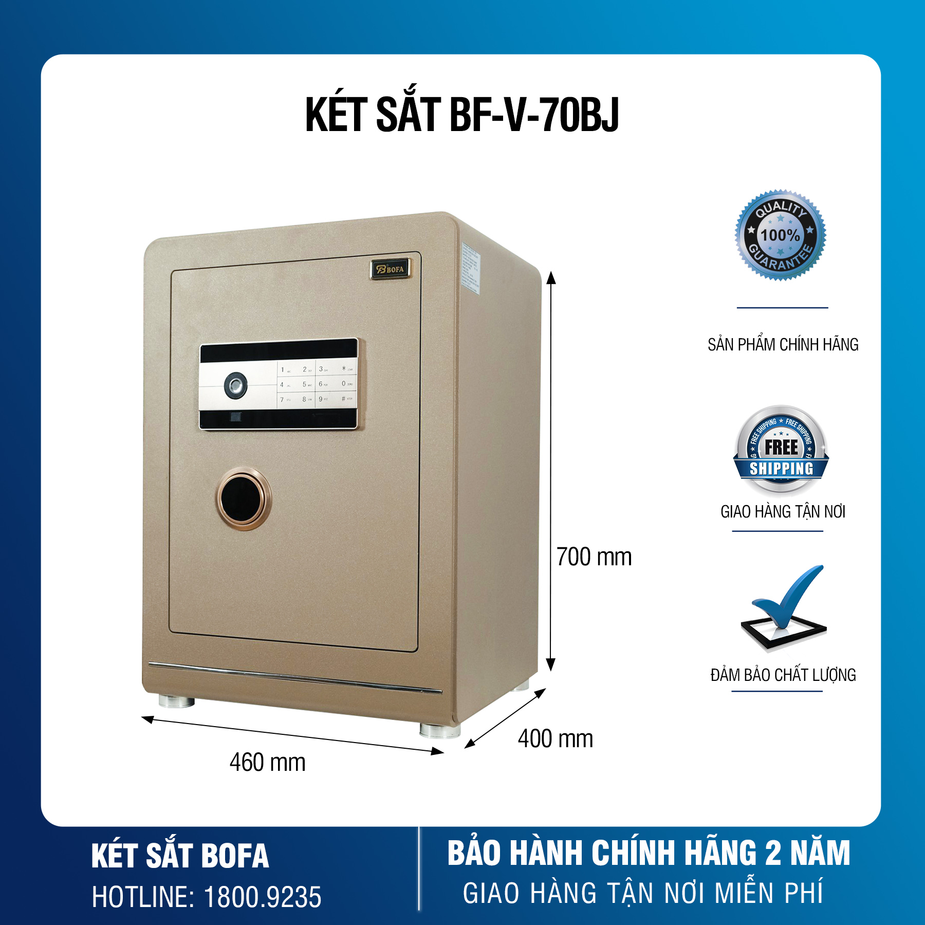 - 1 két sắt nhập khẩu Bofa BF-V-70BJ có tem nhãn đầy đủ chính hãng