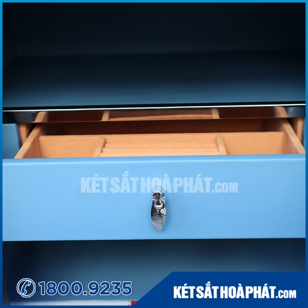 Không gian bên trong két sắt được thiết kế khá rộng lớn, đáp ứng được nhu cầu chứa nhiều tài sản giá trị như tiền bạc, giấy tờ, trang sức, vàng bạc,… Ngăn chứa bí mật được lắp đặt bên dưới, cho phép bạn cất giữ tài sản và tài liệu mật mà không lo bị mối mọt, ẩm mốc.
