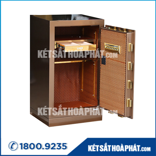 - Bên trong nội thất gồm 1 đợt cố định chia 2 ngăn, 1 đợt di động có thể nâng hạ giúp phân loại tài sản không bị lẫn vào nhau, 1 ngăn kéo được thiết kế tinh tế để trang sức, vàng bạc tốt nhất không bị trầy xước. Toàn bộ được bọc da cao cấp chống ẩm mốc lại vô cùng sang trọng và thẩm mỹ.