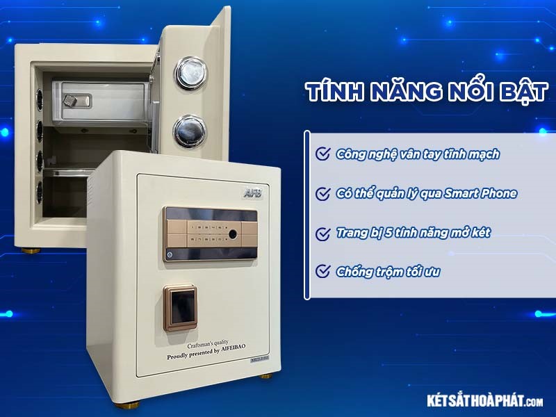Két sắt thông minh Aifeibao HK-A1/D-45HM là sản phẩm két sắt cao cấp, được nghiên cứu và sản xuất bởi hãng két sắt thông minh Aifeibao. Với việc sở hữu nhiều tính năng nổi bật, sản phẩm hiện đang trở thành sự chú ý của hầu hết những người đang có nhu cầu mua két sắt. Trong bài viết này, Két Sắt Hòa Phát sẽ cùng các bạn đi tìm hiểu chi tiết về sản phẩm này nhé.