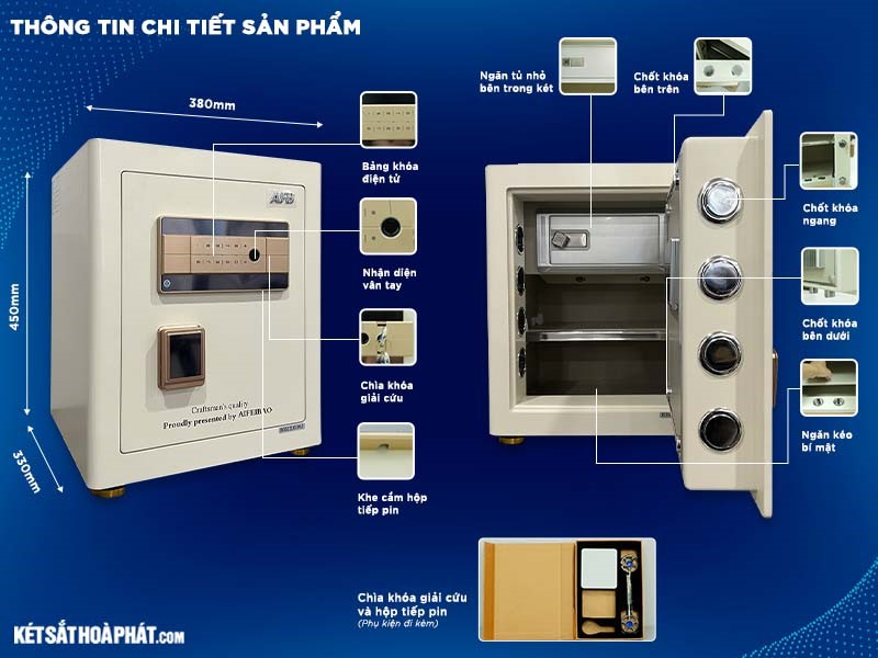 Két sắt thông minh Aifeibao HK-A1/D-45HM là dòng két sắt cao cấp, sở hữu khả năng chống trộm tối ưu, vẻ ngoài sang trọng. Để có cơ hội mua hàng chính hãng, quý khách liên hệ đến Két sắt Hòa Phát để được hỗ trợ tốt nhất nhé.
