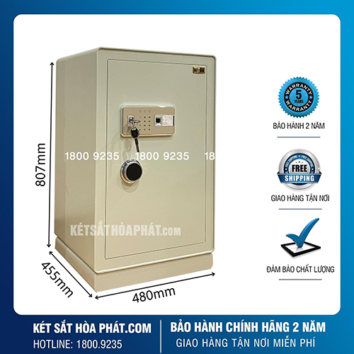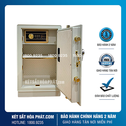 - Khóa: HK-A1/D-80-YR là két sắt khóa điện tử, khóa vân tay, khóa chìa, app thông minh, có khóa chìa dự phòng