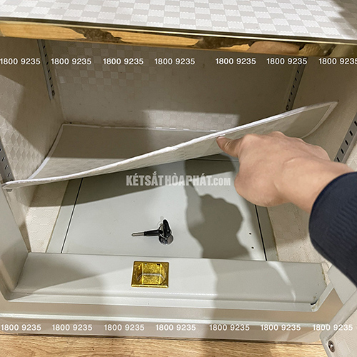 - Không gian sử dụng có 1 đợt cố định, 1 khay di động, 1 ngăn kéo có khóa mật mã điện tử riêng, 1 ngăn bí mật