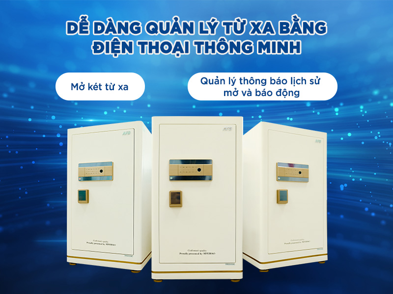 Với điện thoại thông minh có kết nối internet, bạn có thể thực hiện mở két từ xa hoặc quản lý thông báo về lịch sử mở két và báo động trong tình trạng nguy hiểm.