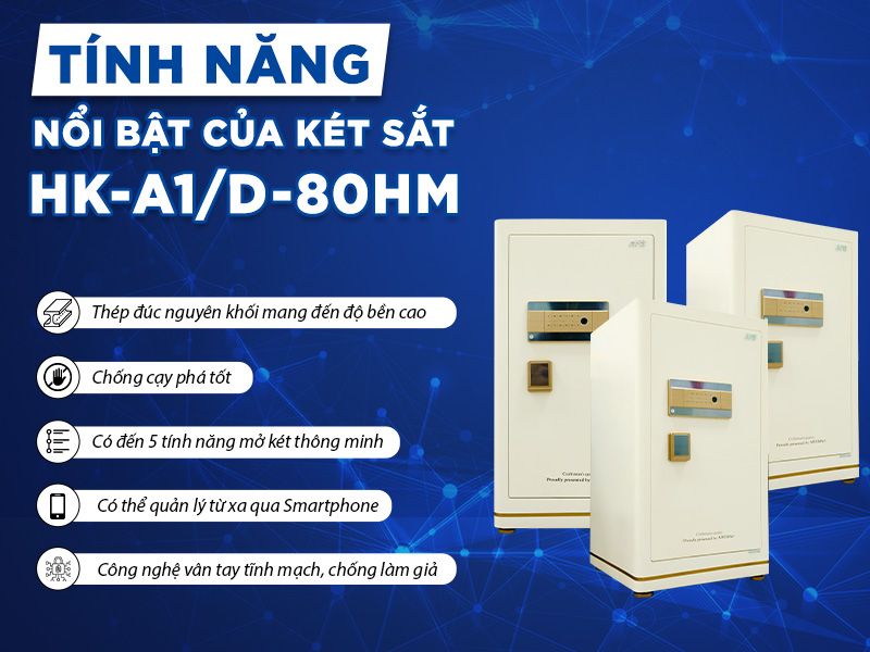 Với kết cấu bền chắc và khả năng bảo mật tối đa, két sắt thông minh HK-A1/D-80HM sở hữu nhiều tính năng vượt trội.