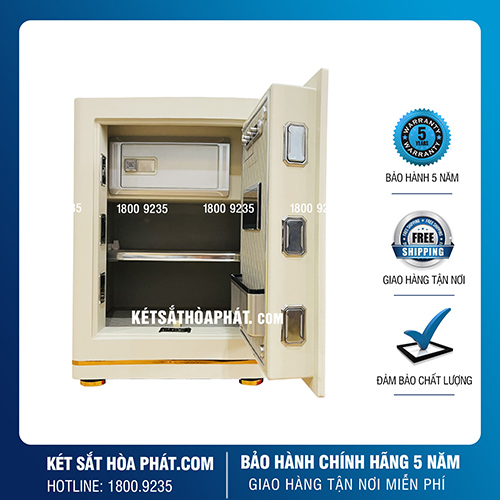 - Tính thẩm mỹ: két hình hộp, có 4 chân chống trơn trượt sơn bóng 3 lớp đầy thẩm mỹ chống han gỉ, bong tróc, bụi bẩn bền bỉ với thời gian, nội thất bên trong sang trọng, thiết kế hiện đại, khoa học.