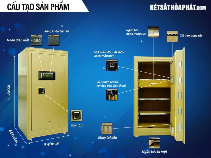Để có thể giúp quý khách hàng hiểu rõ hơn về cấu tạo, đặc điểm chung của két sắt thông minh HK-100-BR, chúng tôi đã tổng hợp chi tiết như sau: