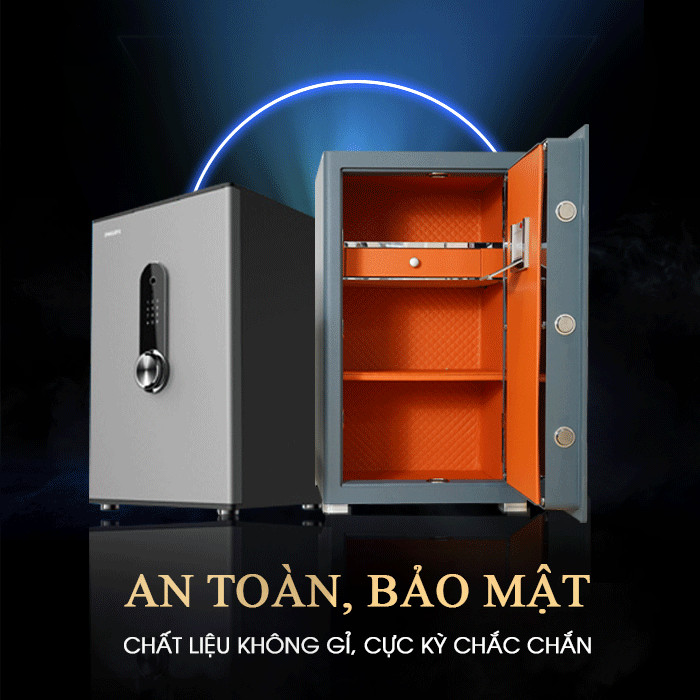 - Cấu thành từ thép nguyên tấm dày 6mm, cánh cửa dày 10mm, Philips SBX601-8B0 có khả năng chịu lực cực tốt, chống khoan cắt, đục phá hiệu quả, bảo vệ tuyệt đối tài sản quý giá của gia chủ.