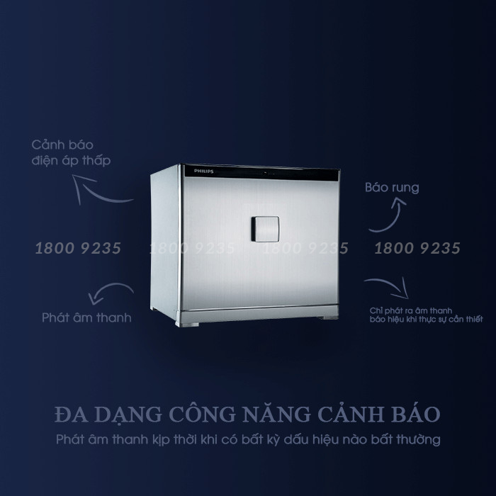 Hệ thống cảnh báo nhanh nhạy, tích hợp nhiều chế độ bao gồm cảnh báo rung, cảnh báo sai, cảnh báo pin yếu, cảnh báo khi két sắt chưa được đóng hoàn toàn do chốt khóa bị kẹt,... Két sắt thông minh Philips SBX701-4B0 sẽ phát ra âm thanh chói tay khi có dấu hiệu bất thường để báo động cho gia chủ, tránh khỏi những trường hợp đáng tiếc xảy ra.