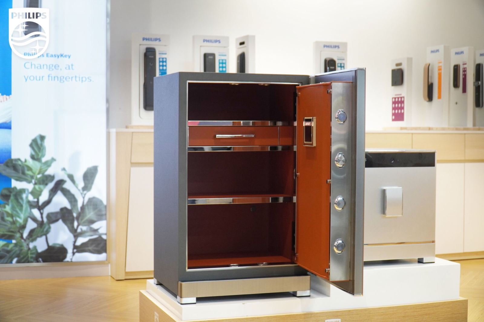 Két sắt thông minh Philips SBX701-8B0 có sức chứa cực khủng, không gian bên trong két được chia làm 3 ngăn riêng biệt, 1 ngăn kéo chứa đựng đồng hồ, trang sức, 1 ngăn bí mật ở đáy két để cất trữ những tài sản đặc biệt quý giá. Với cách bố trí nội thất khoa học, người dùng sẽ dễ dàng cất trữ tài sản, giấy tờ, tài liệu một cách hiệu quả, tối ưu diện tích sử dụng của két sắt. Khả năng chứa đựng của Philips SBX701-8B0 đáp ứng được nhu cầu lưu trữ của đại gia đình, chủ doanh nghiệp, cửa hàng, tiệm vàng,...
