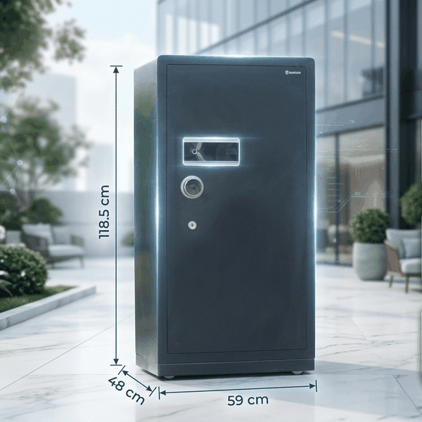 Két Sắt Safiron 120LS là mẫu két thông minh cao cấp bậc nhất trong dòng sản phẩm Safiron, được tạo ra dành cho gia đình, doanh nhân và những không gian cần mức độ bảo mật tuyệt đối. Thân két được chế tạo từ thép Q345 nguyên tấm siêu cứng, cánh cửa ép khít gần như không có khe hở, giúp chống cạy phá hiệu quả và giữ kết cấu vững chắc trong nhiều năm sử dụng. Hệ thống mở khóa 5 trong 1 gồm vân tay điện dung siêu nhạy, mã số điện tử, chìa cơ dự phòng, mở kép hai lớp và mở từ xa qua app Tuya Smart, cho phép người dùng kiểm soát két mọi lúc, mọi nơi ngay trên điện thoại. Bên trong két là nội thất nỉ kim cương sang trọng, chia ngăn tinh tế, thuận tiện cho việc cất giữ vàng, sổ đỏ, hồ sơ, trang sức và các tài sản giá trị cao.