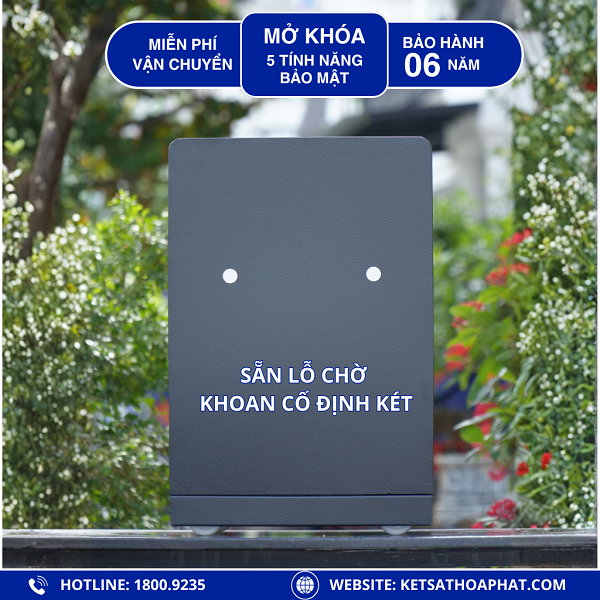 Phía sau két có hai lỗ bắt vít âm sâu, cho phép cố định két vào tường hoặc thành tủ – tăng độ an toàn, ngăn di chuyển hoặc bị bê trộm.