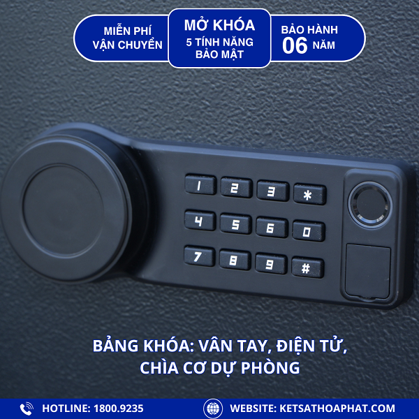 Phương thức mở: Vân tay – Mã điện tử – Chìa cơ – Mở kép – App điện thoại