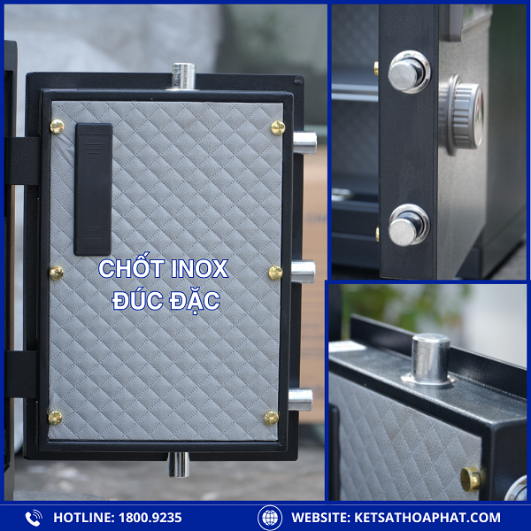 Cấu trúc an toàn: 5 chốt khóa inox đặc ăn sâu vào thân két