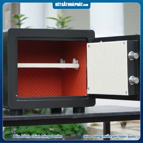 Két sắt được sử dụng khóa vân tay kết hợp với điện tử khi mở két sắt không cần sử dụng đến khóa chìa, bạn có thể mở được két sắt ra bằng cả 2 cách mở đơn giản, trong lúc sử dụng bạn có thể cài đặt được 30 vân tay khác nhau Ngoài ra, còn có thể mở két bằng chìa khóa cơ khi hết pin hoặc trong trường hợp khẩn cấp.