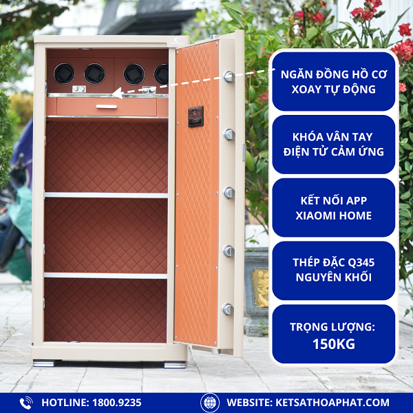 Két có thể chịu nhiệt lên đến hàng trăm độ trong thời gian dài – đảm bảo an toàn tuyệt đối cho giấy tờ, vàng bạc và đồng hồ giá trị cao.