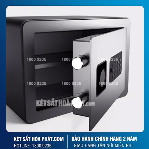 Kết cấu chắc chắn: két được cấu tạo từ thép đúc thân dày 2mm, cánh cửa 3mm, bản lề chìm chữ U, 2 chốt khóa tròn đúc đặc ăn sâu vào lòng két.