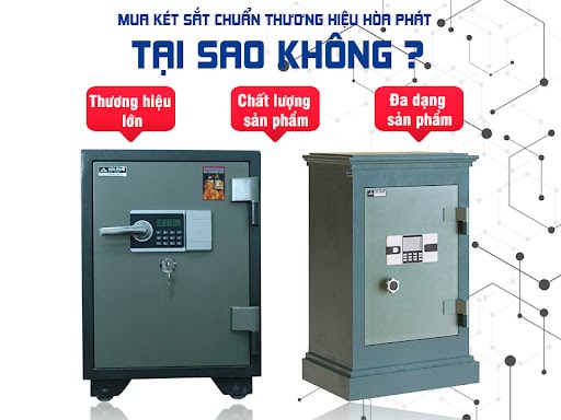 - Thương hiệu lớn: Công ty Két sắt Hòa Phát với hơi 30 năm kinh nghiệm trong lĩnh vực sản xuất và phân phối két sắt, là một thương hiệu rất quen thuộc với mọi người. Vậy nên khi bạn có nhu cầu mua két sắt, hãy ưu tiên chọn lựa đơn vị hàng đầu Việt Nam bởi đó chính là một cách để bảo vệ tài sản cho gia đình bạn.